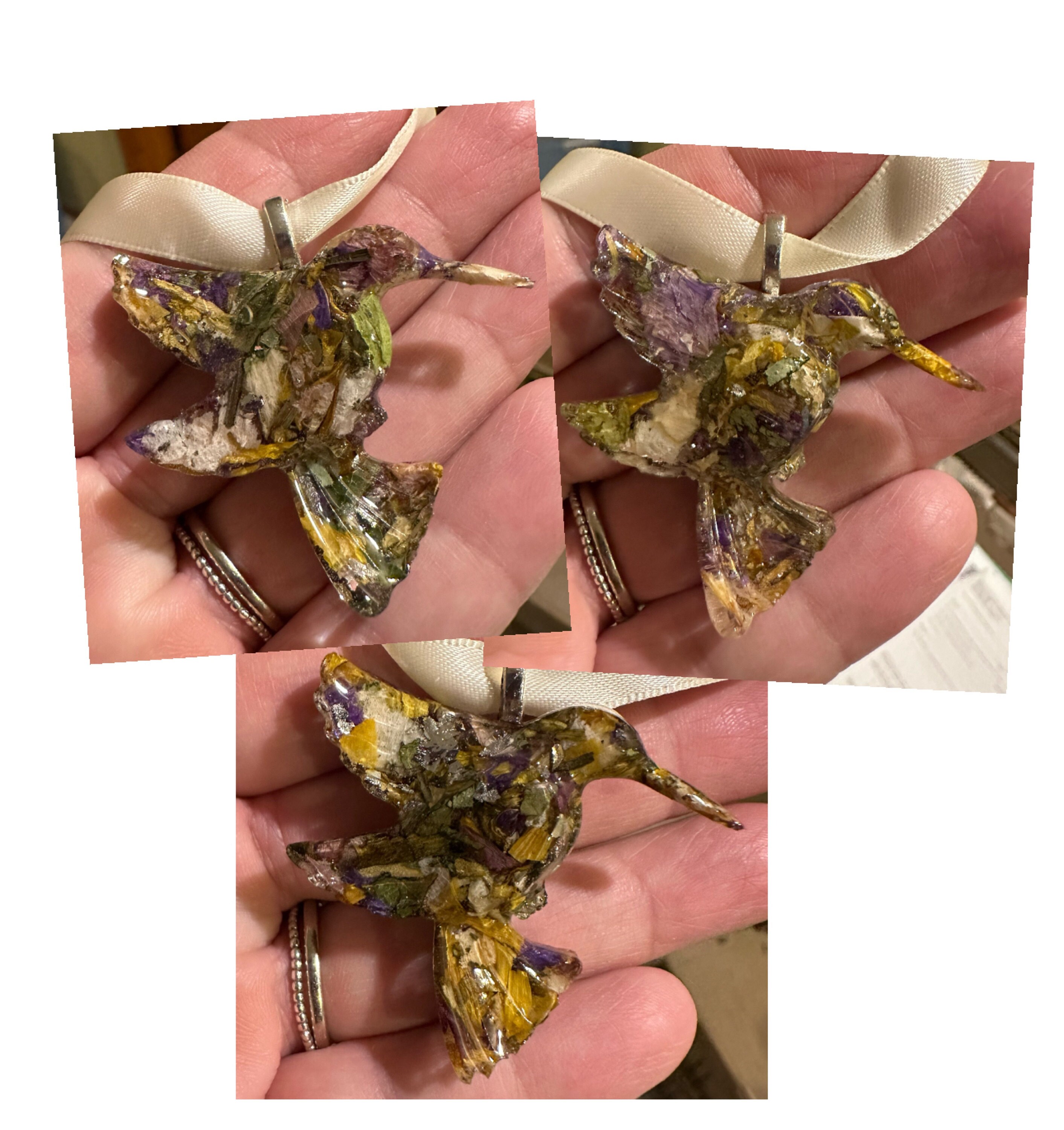 Ornament made from your preserved Wedding or Memorial Flowers or Pet Cremains or Fur Custom Bridal or Funeral Keepsake - HUMMINGBIRD