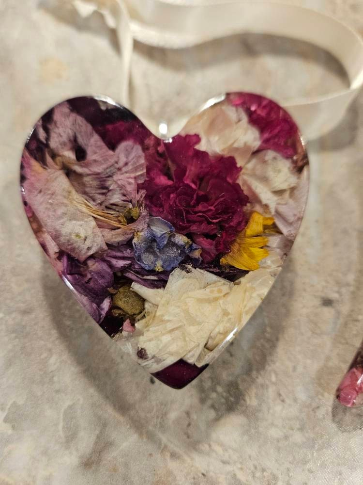 Ornament made from your preserved Wedding or Memorial Flowers or Pet Cremains or Fur Custom Bridal or Funeral Keepsake - LARGE HEART