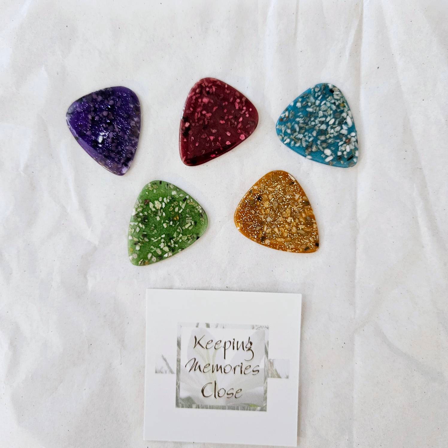 All 5 guitar picks turned out so much more beautiful than I anticipated. They are such a unique way to honor and commemorate the memory of my Dad. I thank you so much for this truly awesome keepsake.