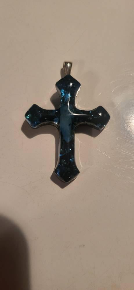 I am absolutely blown away at the craftsmanship on this cross pendent. It is for my husband who lost his girl Hazel ( a cat ) and wanted to have her close to him. The cross holds her fur and one canine tooth. This pendent is everything he wanted and more. Thank you so much 😻