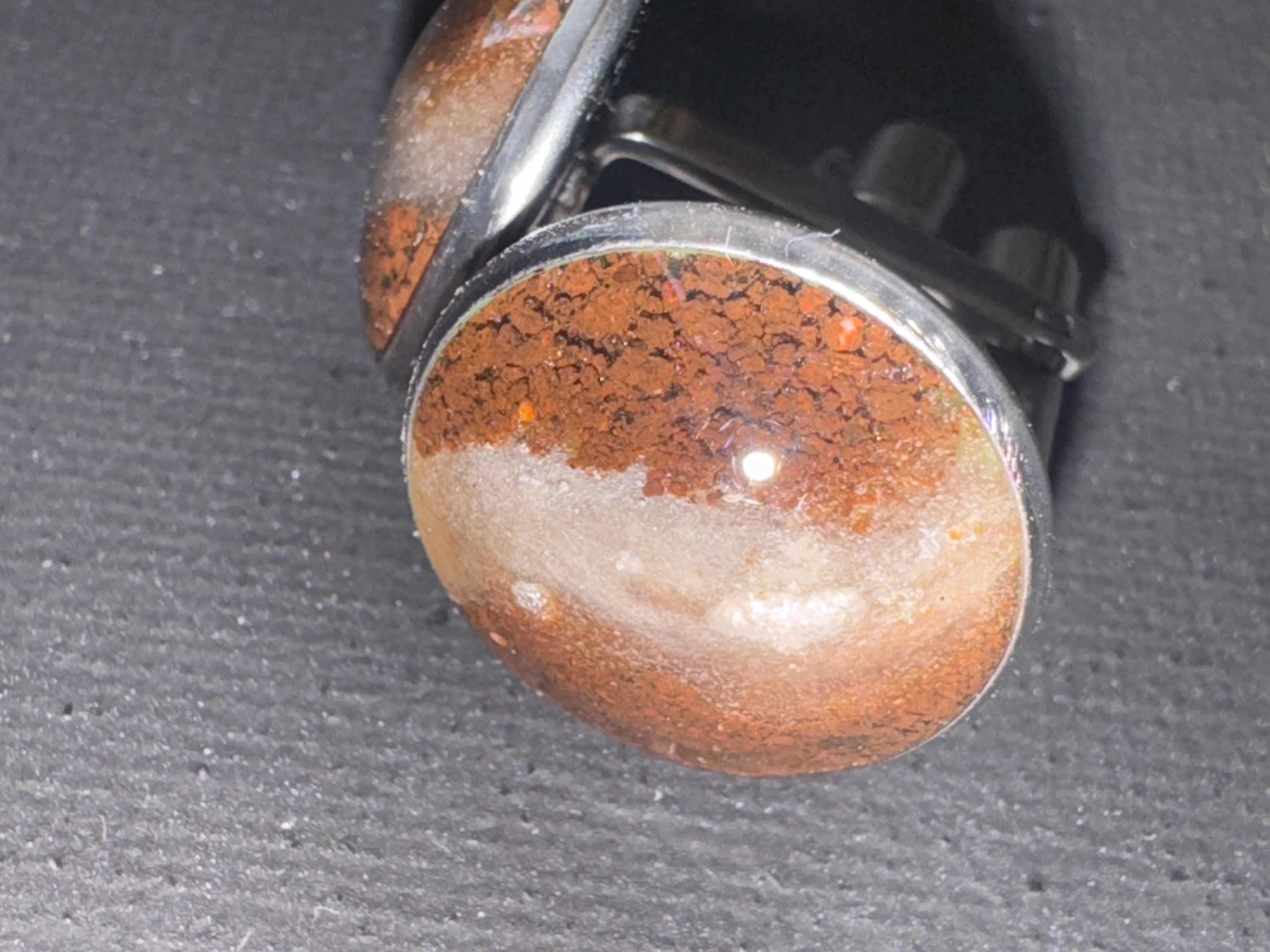 These cufflinks were amazing. We had several pair made for my son’s wedding that had soil from our farm in there. The clarity is amazing, and you can tell it is soil particles in there as well as little strands of cotton grown in our farm. Definitely family heirloom quality!